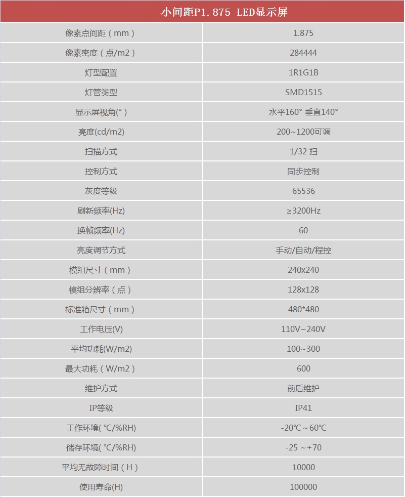 P1.875 高清小间距系列产品比一般显示屏有着宽的色域空间和响应速度、可实现任意大小尺寸无缝拼接、模块化维护。其播放的整个画面色彩均匀,*清逼真,没有普通显示屏常见的汗斑、亮线等不正常显示,画面切换柔和不闪烁,画质细腻,直逼电视机的播放效果。联建小间距、利亚德小间距产品除了在低亮*灰技术领域的突破,该产品还保持了建联科技对*品质一惯的坚持:该系列显示屏拥有3840Hz的刷新频率,这个数字不仅超过了DLP和LCD显示屏的刷新屏率,(后两者的刷新屏率只有大约120Hz),而且在同类产品中也是一个*品质的象征。对比度5000:1在黑屏状态下可呈现出黑度,是同类产品中的佼佼者。